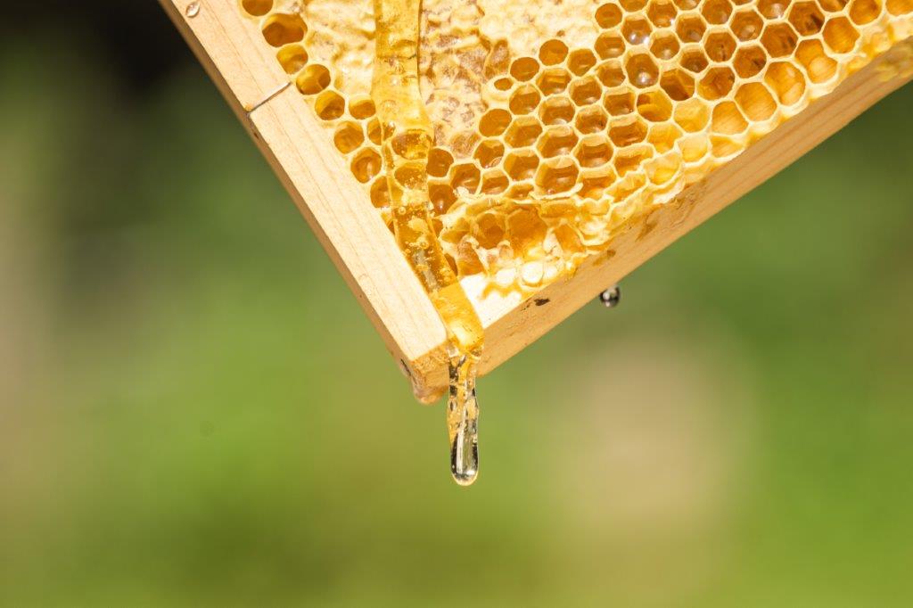 ミツバチが羽根で仰ぎ、羽ばたきによって蜜から水分を飛ばすことで蜂蜜へと変化します。